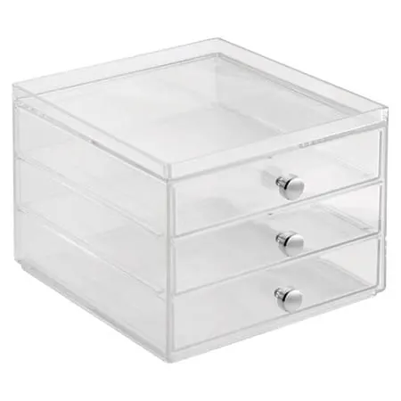 Sorting your makeup together won’t be useful if you don’t have a good place to keep it. It doesn’t matter if you like using a formal makeup box, a stacking storage bin, or smaller containers in a drawer, you need to have some way to keep your makeup organized. A simple three drawer storage tower like this InterDesign 3 Drawer Organizer from Target are a great option. If you want something at a lower price point, these organizing bins from Dollar Tree will fit well in most makeup drawers.