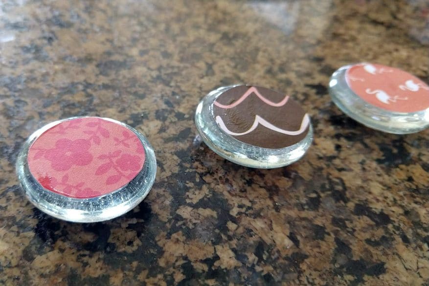And there you have it! Some fun new glass button magnets to use in your home, at work, to give as gifts or any other way you like to use them. If your kids have lockers, they could also use them at school! This whole project is inexpensive and a great way to use up scrapbook paper scraps, as well as add a little personality and style to any space!