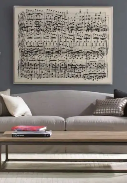 Use meaningful songs as inspiration for your decor. It could be anything from your favorite song, to the first dance at your wedding. Make it into artwork by using the lyrics or the actual sheet music, like this oversized print.